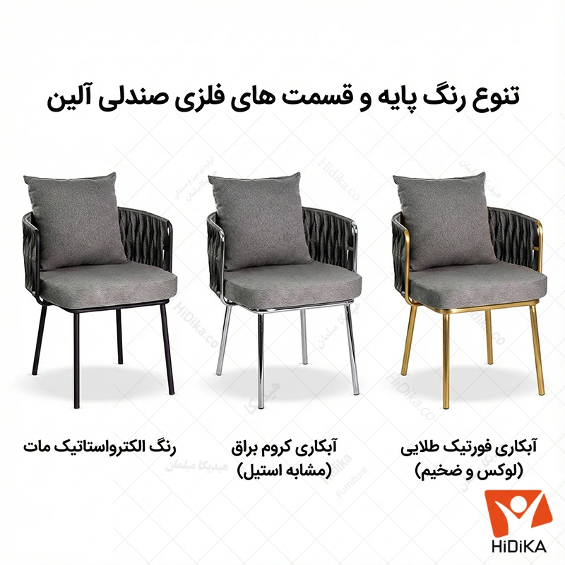 صندلی فلزی آلین در سه نوع پوشش قابل تولید است: